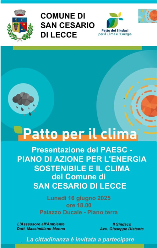 Presentazione del PAESC – Piano d’Azione per l’Energia Sostenibile e il Clima del Comune di San Cesario di Lecce.
