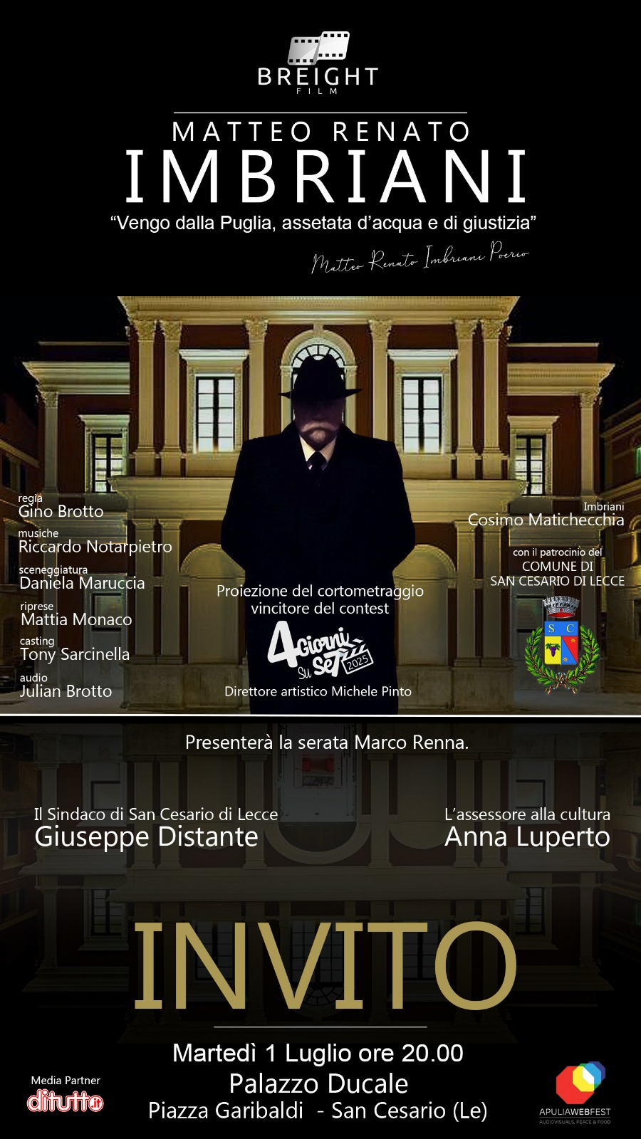 Martedì 1 Luglio ore 20:00; Proiezione del cortometraggio
