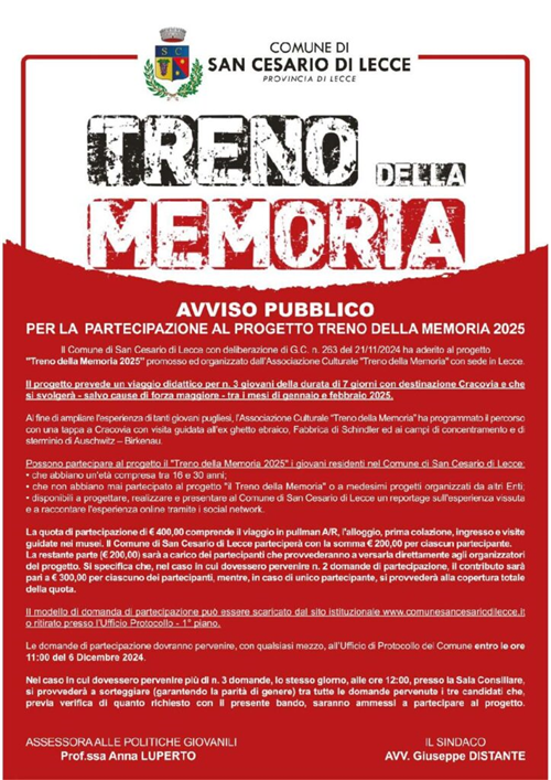 Treno della Memoria - Avviso pubblico per la partecipazione al progetto: il treno della memoria