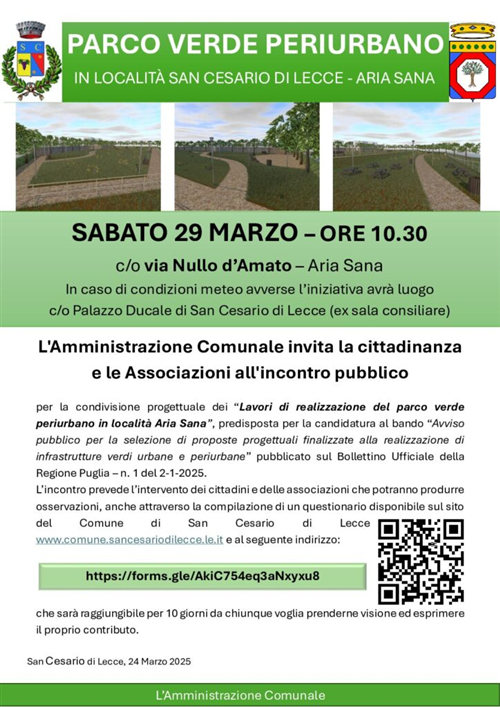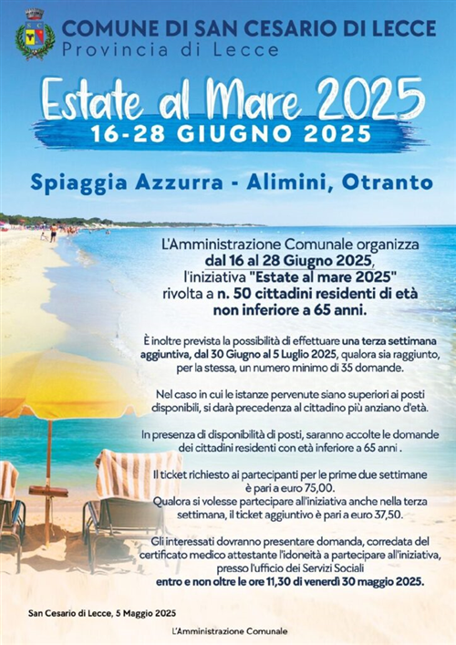 Il Comune di San Cesario di Lecce, in esecuzione della determinazione del Responsabile del Settore Affari Generali n.