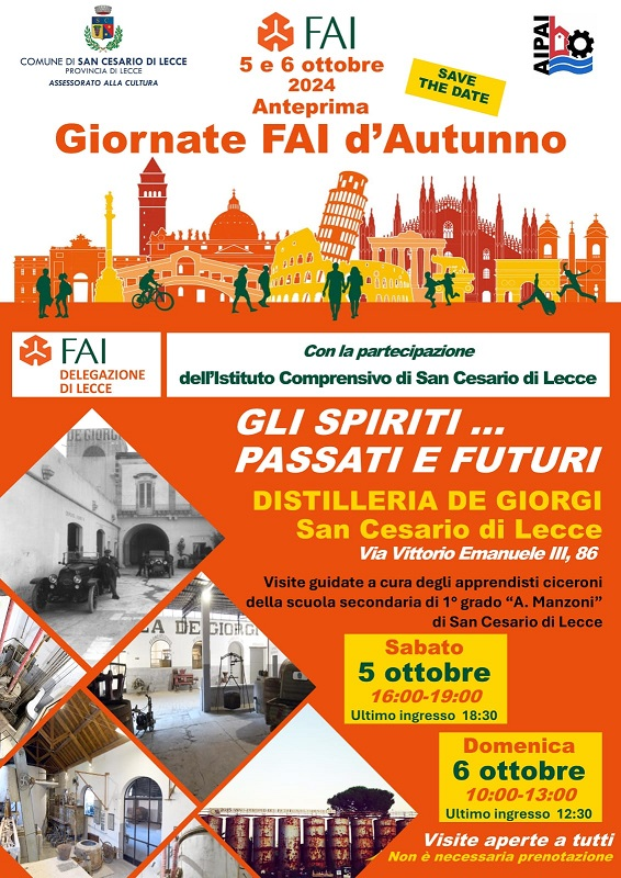 Visite guidate a cura degli apprendisti ciceroni della scuola secondaria di 1° grado “A. Manzoni” c/o Distilleria De Giorgi, Via V. Emanuele III, n.86