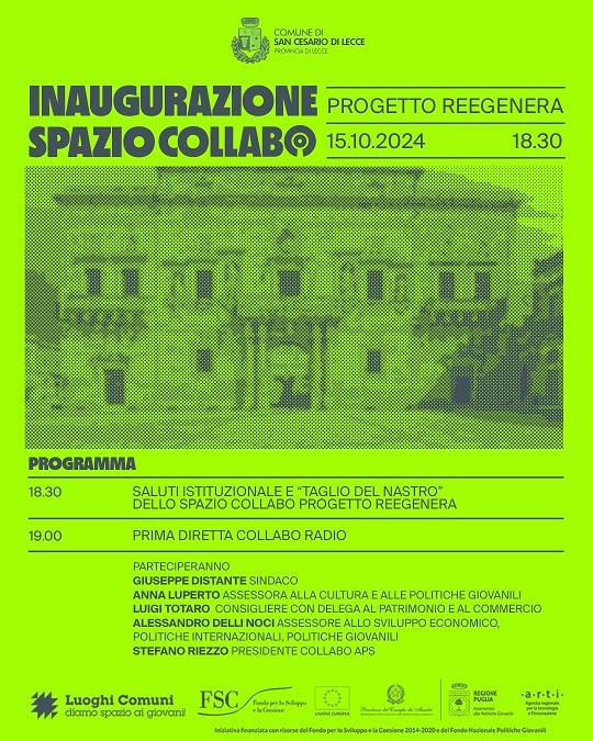 PROGETTO REGENERA, Inaugurazione Spazio Collabo il 15/10/2024 h.18.30